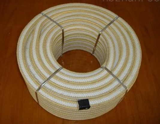芳纶纤维盘根由芳纶纤维浸渍聚四氟乳液和润滑剂处理编织而成。有较好的耐化学性,高回弹,低冷流。芳纶盘根具有*的高转速、高模数的性质(被称为人造金属线)。所以,与其它类型的盘根比较,它能抵抗颗粒结晶介质和更高的温度既可 单独使用也可与其它盘根组合。在泵系统上是很好的石棉替代产品。